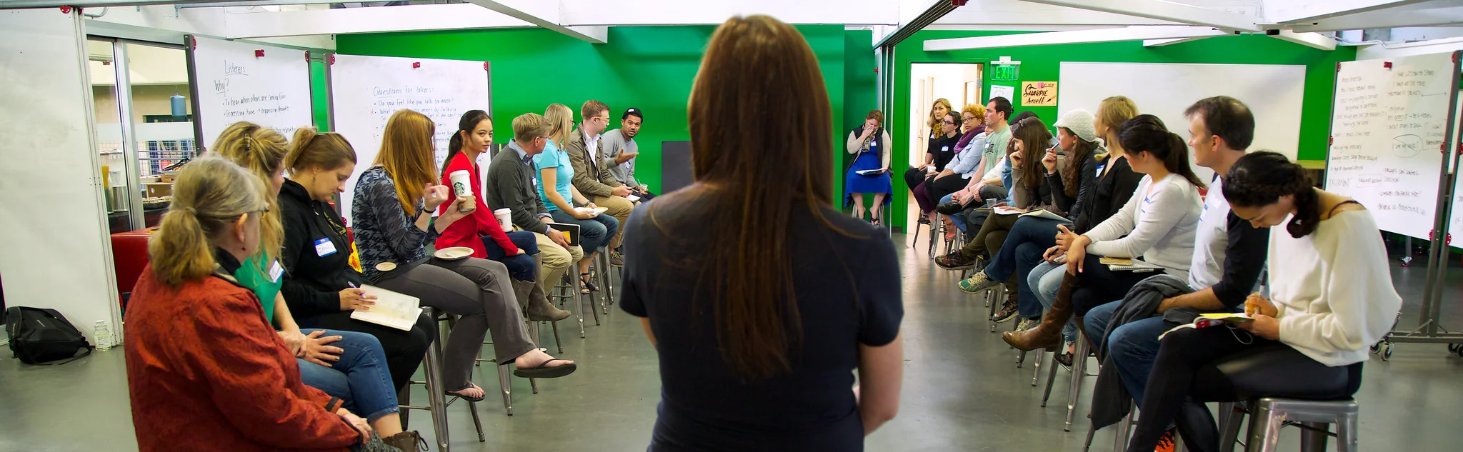 One of the variables we are exploring is exactly when to insert the “teaching” in the agenda of the day. In traditional workshops, the teaching is done at the beginning of the day or before an experience begins.