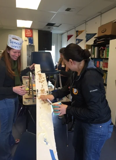 We kicked off with an exercise on team building, listening, and working with unanticipated constraints that often surface in education and force us to change our approach to solving problems. The K12 Lab Network and EPAPA teachers formed two teams to build a contraption that would let a ball roll down to the ground as slowly as possible. Teams grabbed materials in closets, bins, and more. With only three minutes of build time remaining, a new rule was added. The ball had to reach the ground in as close to 30 seconds as possible. All bets were off: team EPAPA took yogurt and smeared it on their ramp with granola to create texture to slow the ball down, while the K12 Lab Network team used paper and tape to create friction. And EPAPA took first! Ingenuity at its finest.